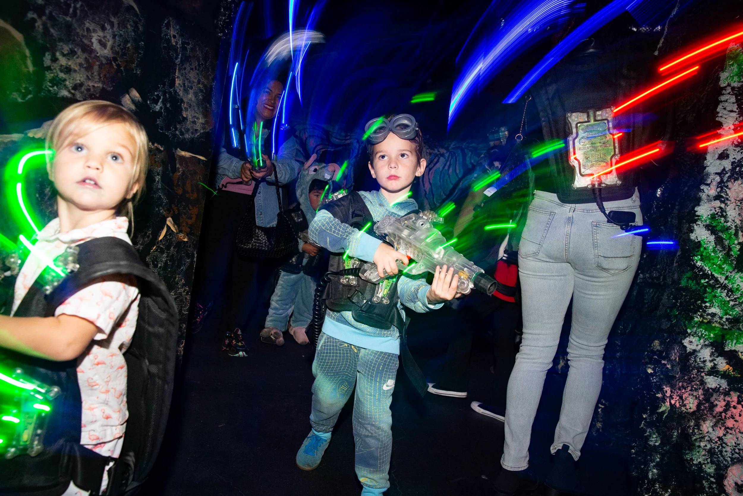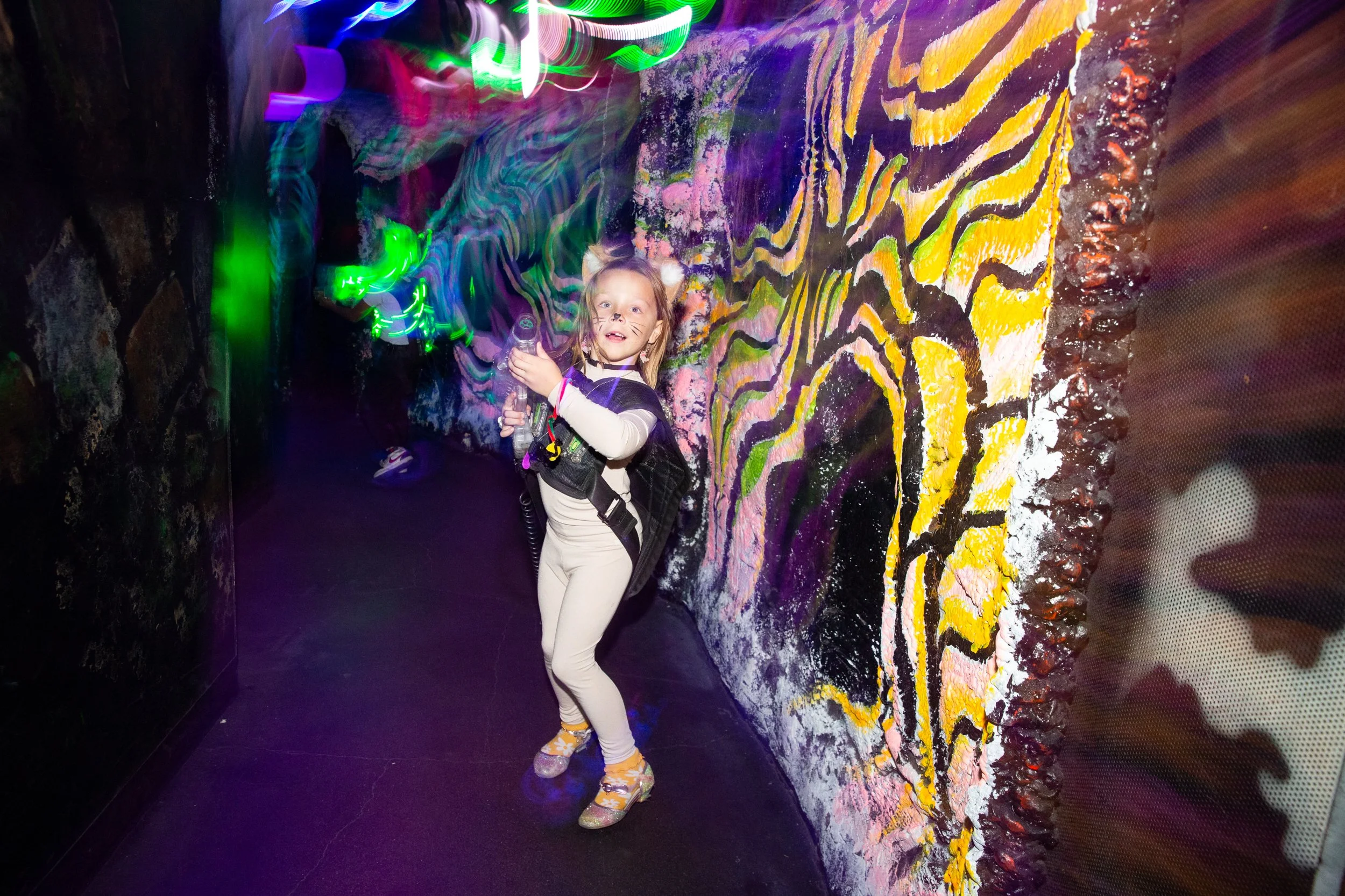 When I heard she was having a laser tag themed birthday I was pretty stoked. I’ve never actually played before, but Barney from “How I Met Your Mother” made it look amazing (especially in a suit). I showed up to to the venue I did the usual of making some portraits of the family while they set up for the party and waited for their guests to arrive. It ended up being about thirty -forty kids who showed up, this allowed for three teams in the laser tag arena. Now I’m a bit night blind so it took me a second to get used to the course. Once I locked in my distance to range focus on the players it was on. The first round I played it pretty safe and just used the flash to catch the kids like a deer in headlights. After the round we all had pizza and I was struck with inspiration. I realized that I was actually in a pretty good position to create some photographs that could be used outside of a family album. By the next round my brain was turning and I thought this is a perfect time to do a test shoot. I had a full room of kids running around in costumes having fun. So I started playing around trying to capture the energy of laser tag. The images below are some of my favorites and I think could be a good proof of concept for future shoots like this.
