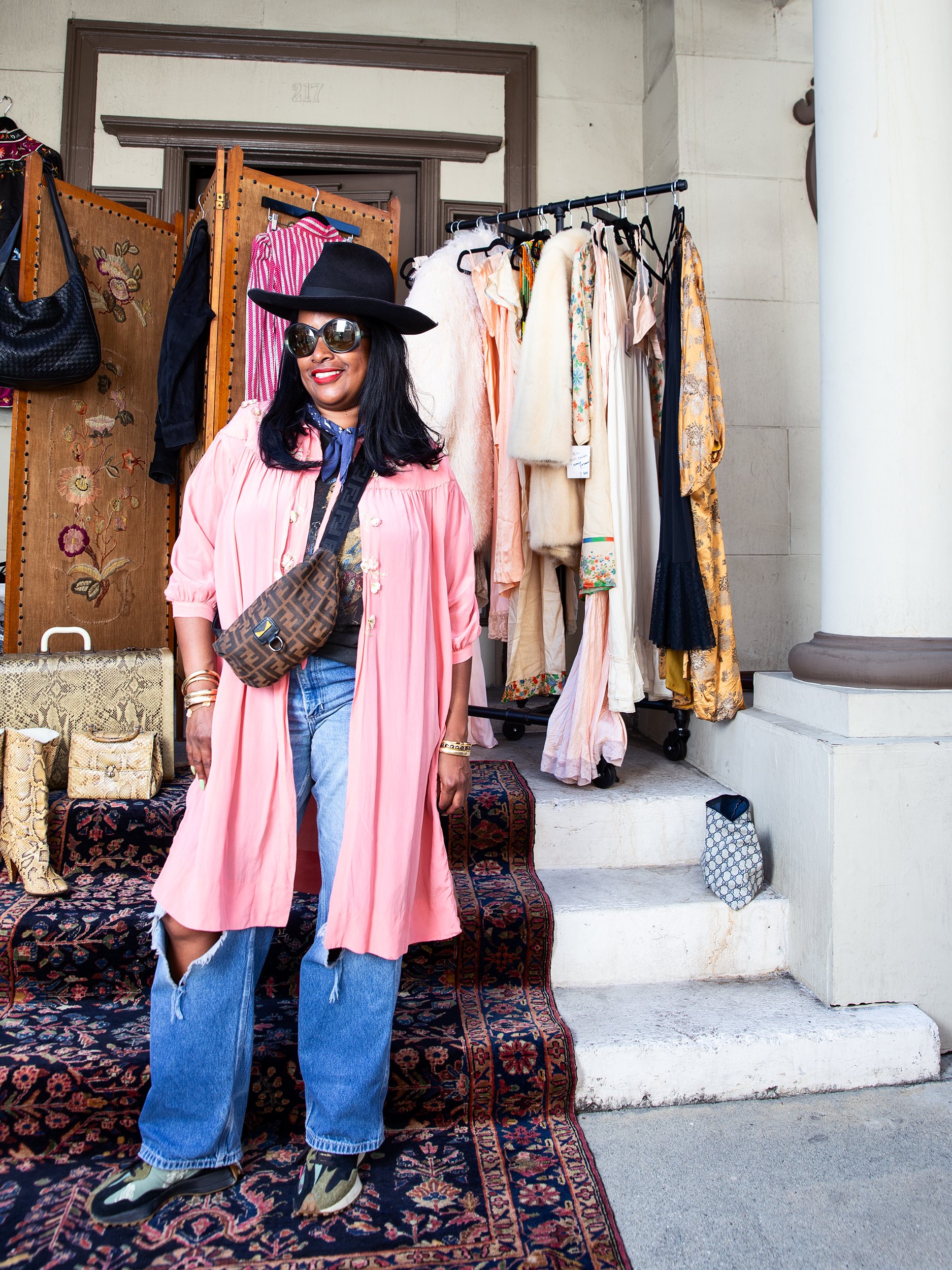The first portrait I made was of a woman holding a Chucky doll — she smiled and played along. From there, we slowly made our way down the alley, meeting people, making pictures, and absorbing the energy. Some folks welcomed the camera, others brushed me off, but that mix is what makes street work honest. My goal is to eventually make a portrait of every shop in Santee Alley. I’ve gone back a few times since that first shoot, and it’s still one of the most rewarding days I’ve had behind the camera.