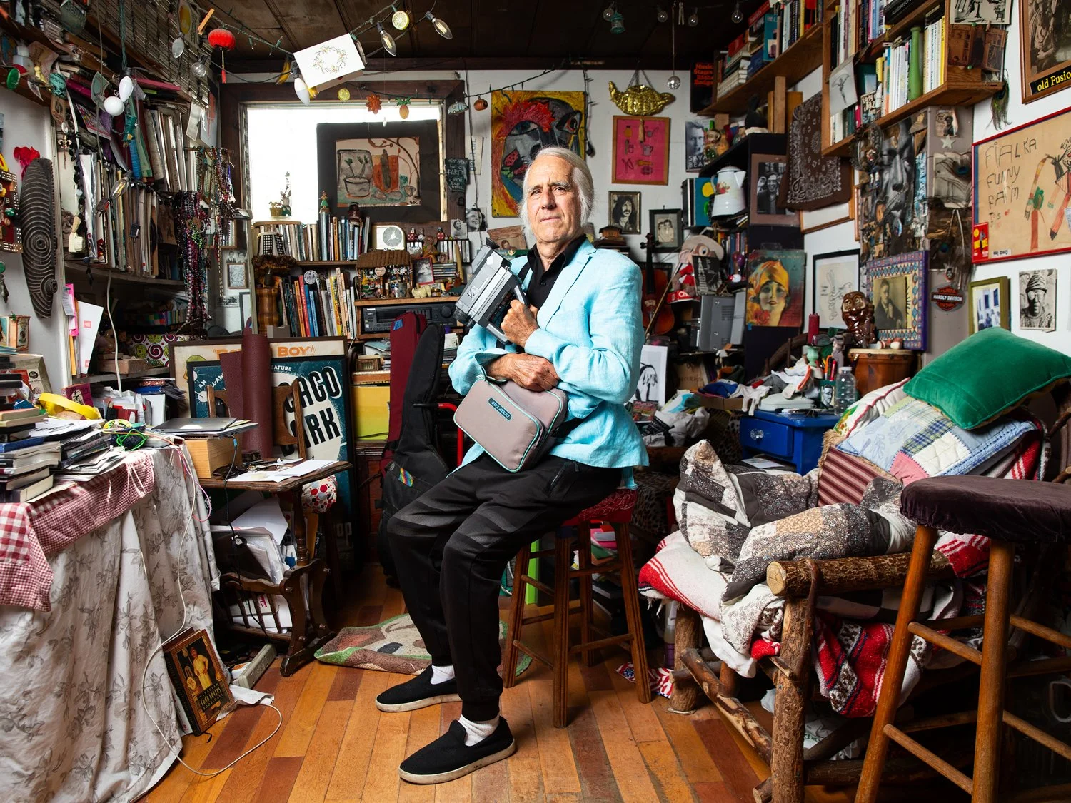Experimental filmmaker Gerry Fialka poses for a portrait inside of his very eclectic home in Venice, CA.